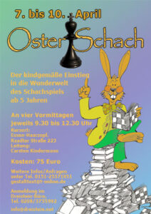 Nach den österlichen Festtagen (7. bis 10. April) hoppelt wieder der Schachhase bei Dreistein vorbei. Wie immer mit einer bunten Mischung an Spielformen und kniffligen Rätseln.